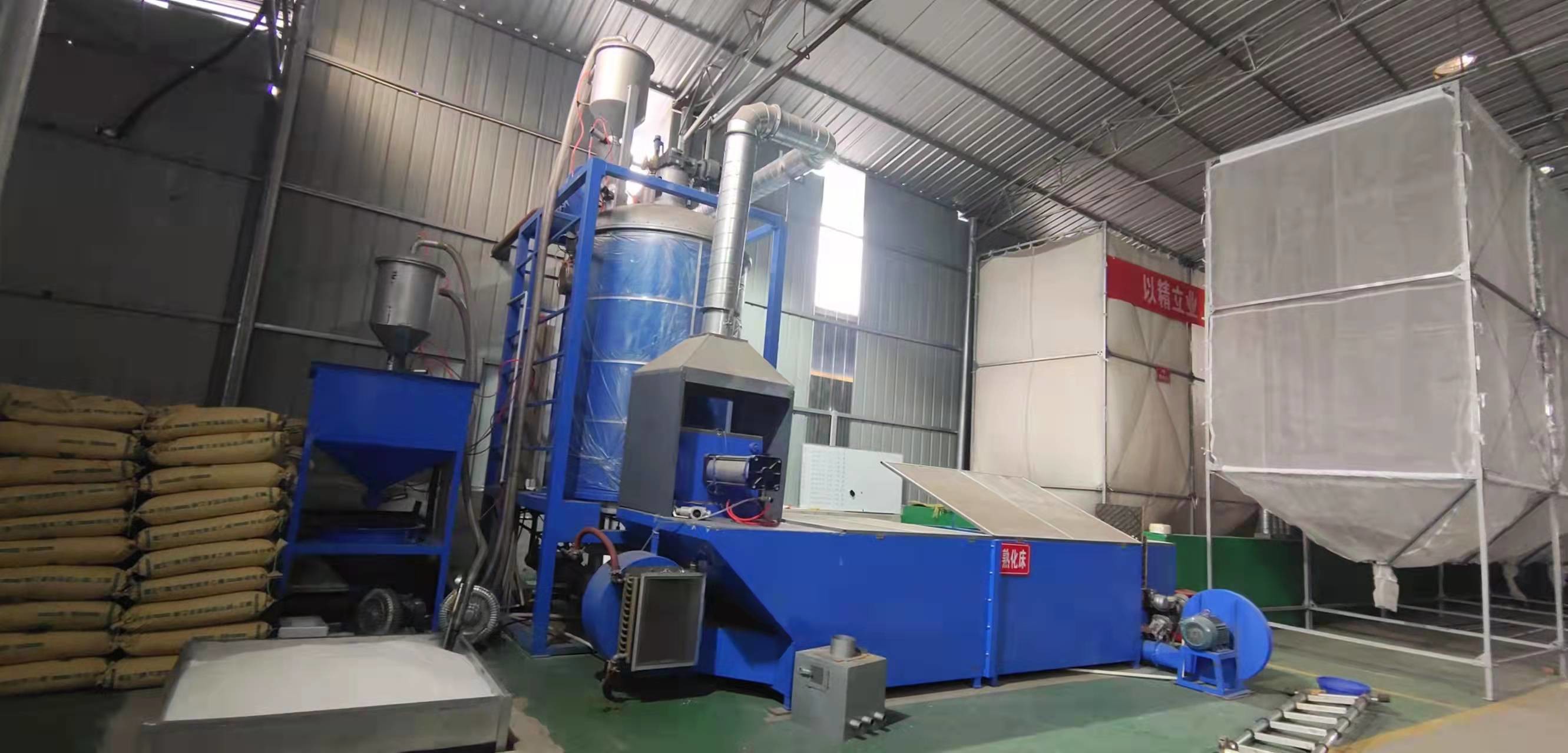 ■ La machine de pré-expansion continue comprend la machine principale d'expansion, un convoyeur à vis, un séchoir à lit fluidisé, un souffleur pour transporter le matériau expansé vers les silos.