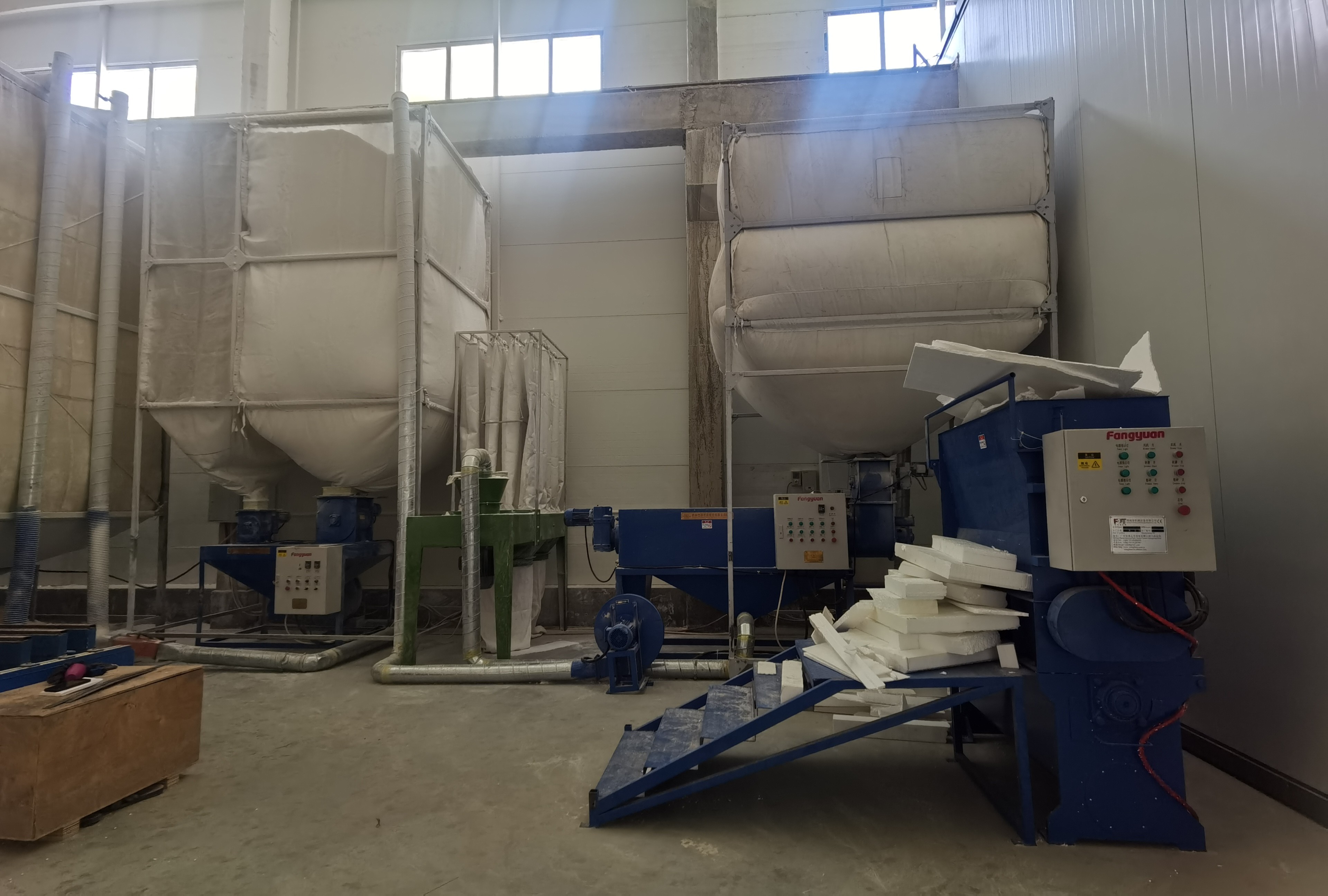 L'atelier de production d'EPS a produit des produits défectueux, les déchets peuvent être réutilisés grâce à ce système de recyclage, pour que l'entreprise gagne plus de profits